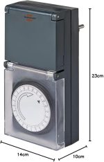 Zamanlayıcı MZ 44, mekanik zamanlayıcı prizi (günlük zamanlayıcı, IP44 korumalı, yüksek temas koruması ve koruma kapaklı) gri