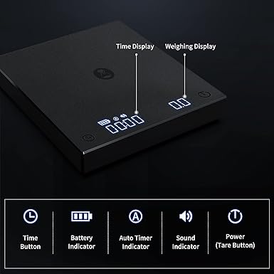 Çok Yönlü Demleme Uygulamaları: Bu kahve ölçeği, yalnızca dökme demleme yöntemleriyle sınırlı değildir. Yüksek ağırlık kapasitesi, hassasiyeti ve ilave akış hızı göstergesi ile espresso, Fransız basını, Aeropress ve daha fazlası dahil olmak üzere çeşitli demleme teknikleri için kullanılabilir. Çok yönlülüğü, onu farklı demleme tercihlerine sahip kahve meraklıları için değerli bir araç haline getirir.