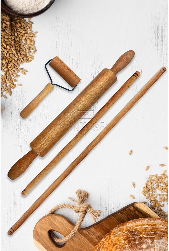 Zambak Serisi Ahşap Hamur Açma Oklavası Merdanesi Rulosu 4 lü Set ECHO2