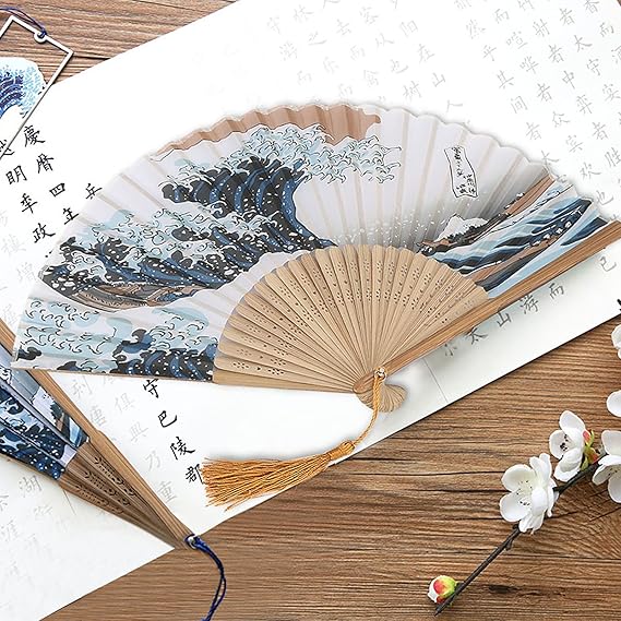 Zarif Japon Tarzı Boyalı Dalgalar Retro Bambu Katlanır Fan Ev Ofis Dekorasyonu Için Hafif Dans Pervane (Erqing 25 kemik)