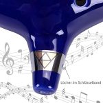 1 x 12 delikli Okarina koyu mavi sırlı, beyaz taban, askı bandı kablosu ve bir müzik kitabı; çok havalı ve modaya uygun tasarım, dekorasyon için de idealdir.