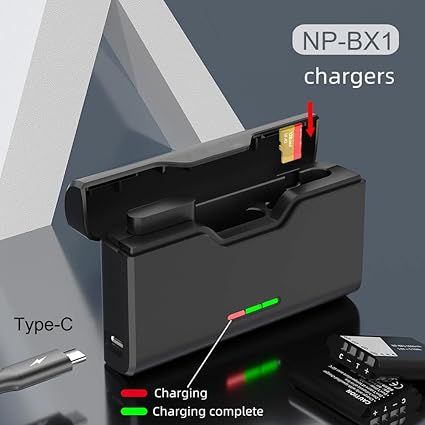 Uyumluluk ve şarj güvenliğini sağlamak için Sony NP-BX1 piller için özel olarak tasarlanmış bir şarj cihazı.